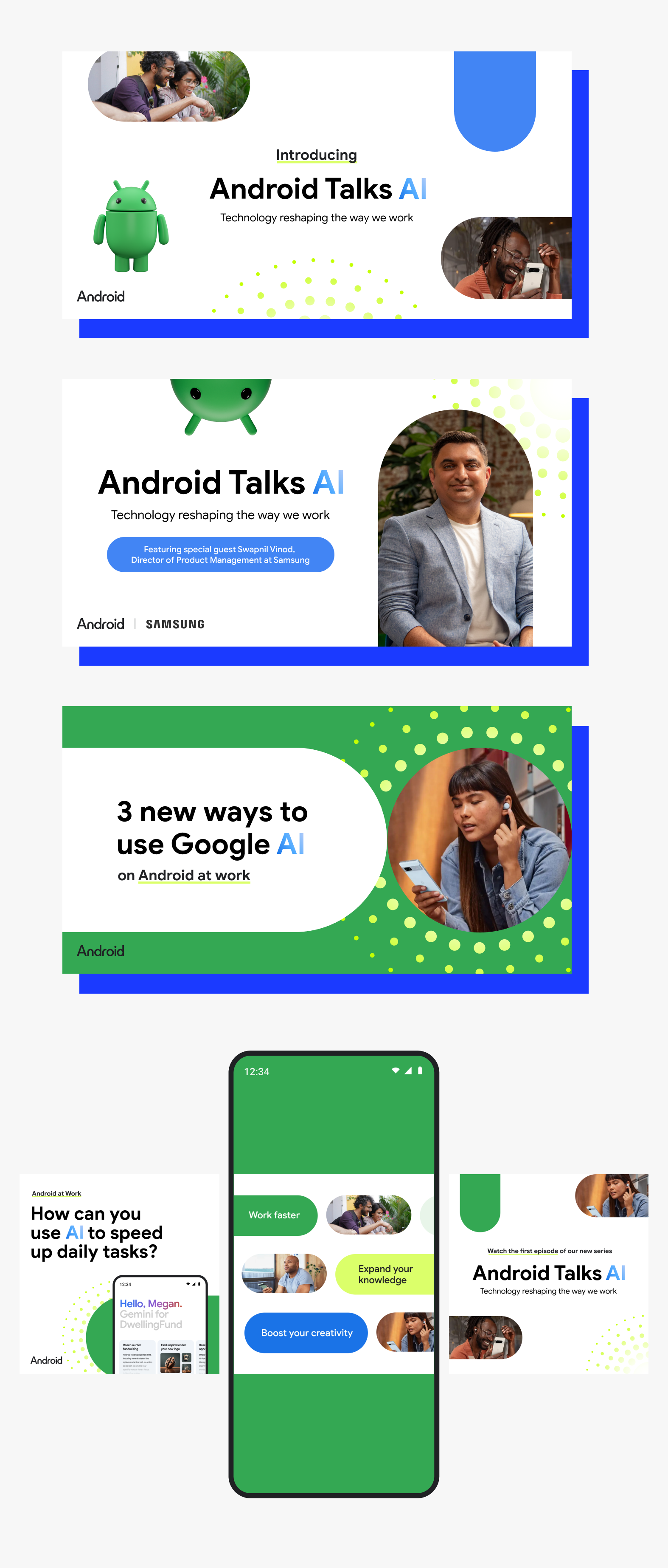 My team and I were tasked with developing a digital series about AI where experts from different fields discuss the hottest topics in mobile technology. The team took on every aspect of this ambitious project, handling everything from promotional materials to event production and set design. While the scope initially seemed overwhelming, our resourceful team tackled each challenge head-on. The nature of the production meant we often had to jump between different roles to support each other, creating an incredibly collaborative atmosphere. Working with limited time and budget pushed us to get creative with solutions, and honestly, these constraints led to some of our most innovative work and memorable moments. In this first season, Android experts from Samsung and Pixel explore the arrival of AI in Android devices and demonstrate how Google AI can radically reduce time spent on everyday tasks, boost creativity, and improve knowledge – all with more control and stronger security. Creative Director: Sue Lopes Set Designer: Sue Lopes Writer: Vicky Jacob-Ebbinghaus Art Director: Alex Ursetta Producer: Ryan Miller & Alexa DeStefano Editor: Clara Martin